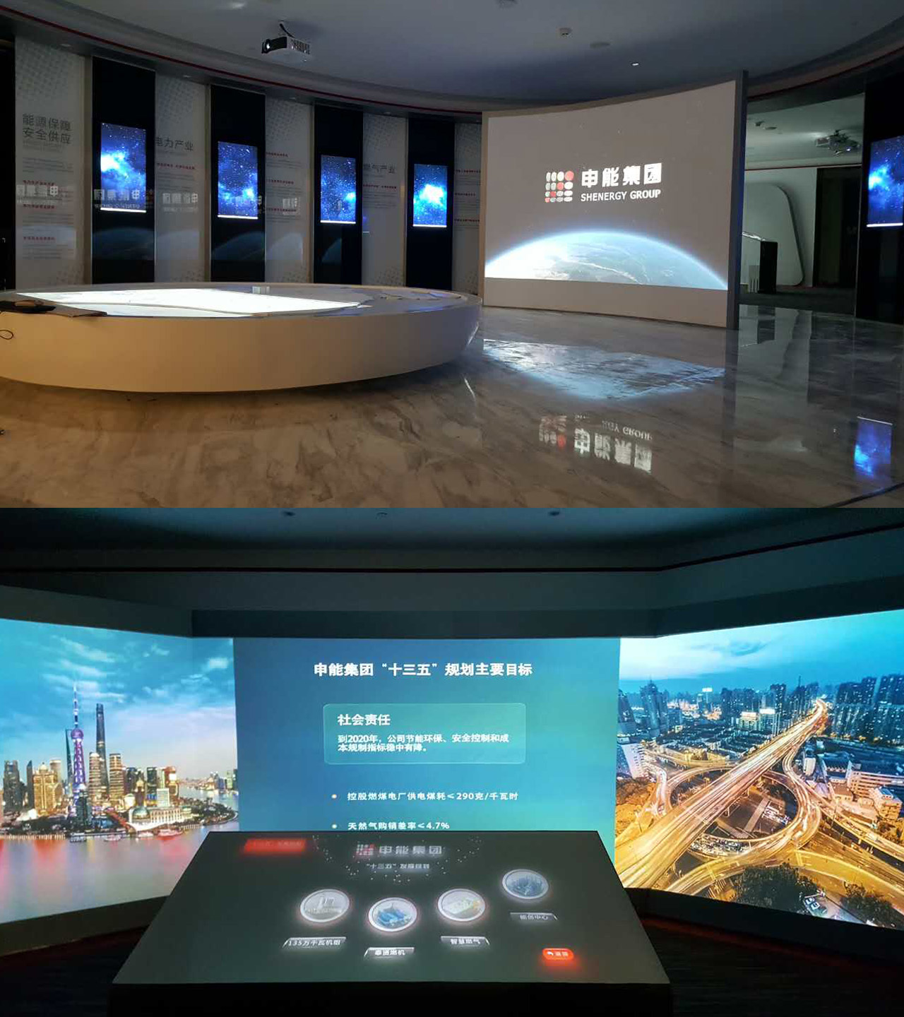 项目名称:申能集团企业展厅业主:申能集团项目地点:上海时间:2016年项目说明:本次项目是对于申能集团的企业展厅进行设计改造。整个展厅包含五个展区。本公司承接展馆内全部数字展项与系统集成工作,整个展厅效果得到业主的一致好评。